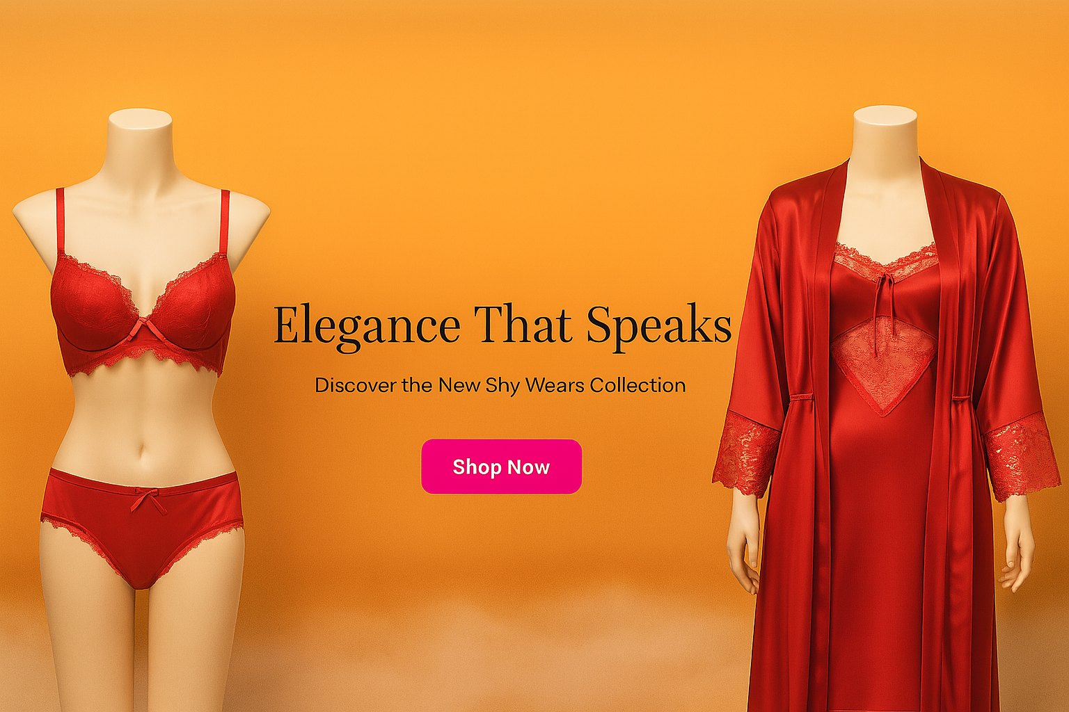 Luxury Red Satin Nightwear Set Lace Slip & Long Robe Shy Wears Pakistan
